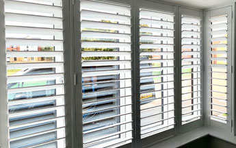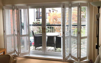 Shutters that slide open and concertina back for easy access. Particularly usual for patio doors.